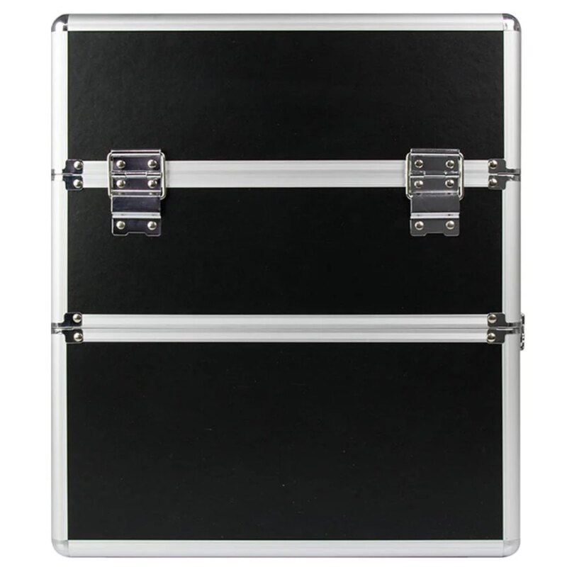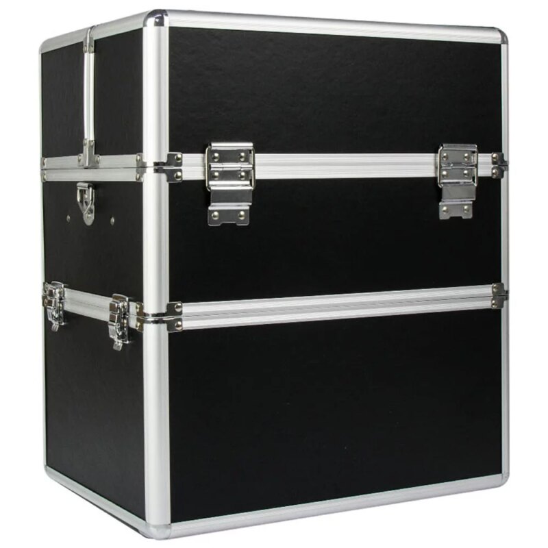 KUFEREK KOSMETYCZNY XXL DWUCZĘŚCIOWY NA LAMPĘ I FREZARKĘ – CZARNO-SREBRNY