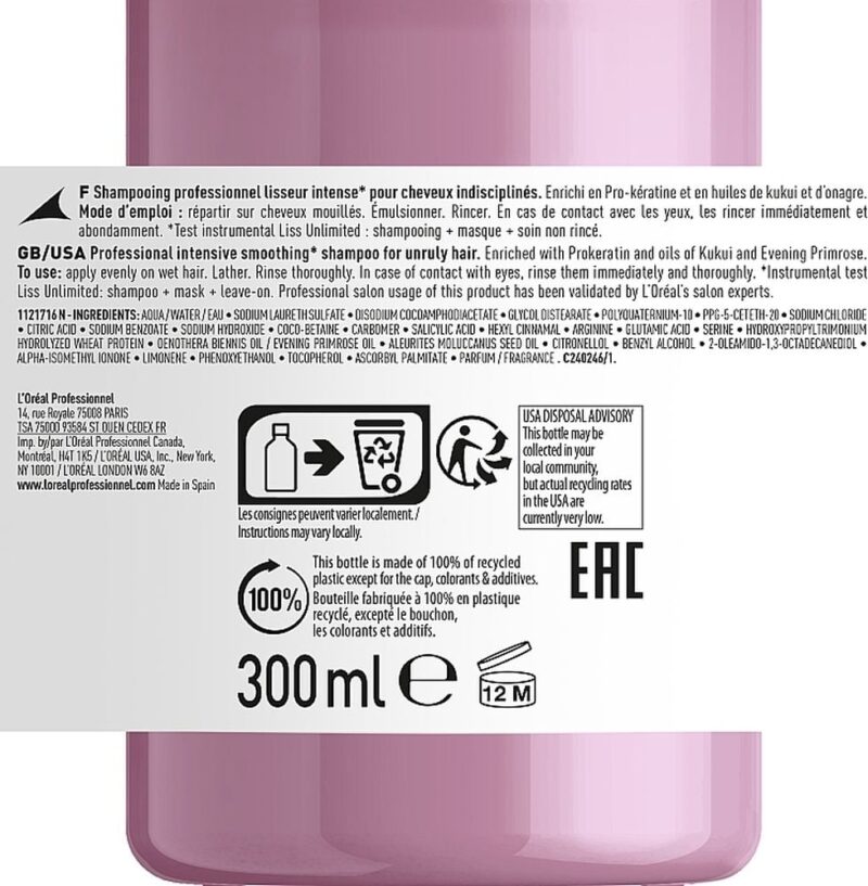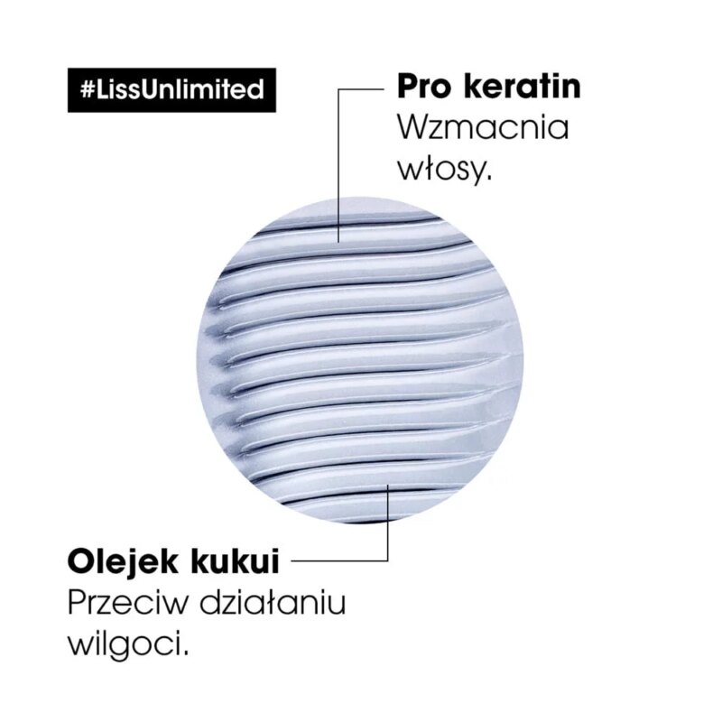 Loreal Liss Unlimited Szampon przeznaczony do wygładzenia włosów puszących się, niesfornych oraz niezdyscyplinowanych, idealny do codziennego stosowania.