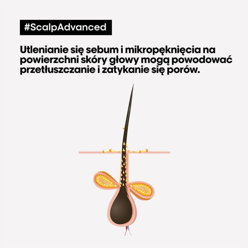 Formuła L’Oreal SCALP ADVANCED szamponu oczyszczającego jest oparta na najnowszych technologiach pielęgnacyjnych i składnikach aktywnych, które działają na skórę głowy w celu usunięcia wszelkich nieczystości. Szampon ma postać lekkiego żelu który delikatnie, ale skutecznie oczyszcza pory skóry głowy, usuwając wszelkie zanieczyszczenia, które mogą prowadzić do podrażnień, swędzenia czy nadmiernego łuszczenia się skóry.