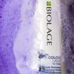 Fioletowy szampon Biolage ColorLast służy do pielęgnacji włosów w odcieniach blond – zarówno naturalnych, jak i farbowanych. Szampon Biolage ColorLast nie zawiera parabenów i ma wegańską formułę. Pomaga odświeżyć kolor między zabiegami rozjaśniania w salonie fryzjerskim.