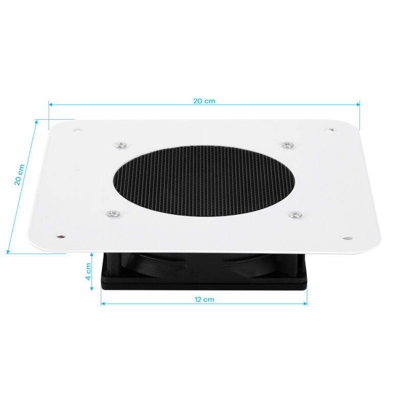 Możliwość zamontowania pochłaniacza bezpośrednio w blacie biurka ułatwia utrzymanie wysokiego poziomu higieny i porządku w miejscu pracy. Taki sposób instalacji sprawia, że urządzenie nie zajmuje dodatkowej przestrzeni, a organizacja stanowiska staje się prostsza i bardziej ergonomiczna. Płaska, biała maskownica z elegancką czarną kratką nie wystaje ponad powierzchnię blatu, dzięki czemu pochłaniacz prezentuje się estetycznie. Prosta konstrukcja oraz minimalistyczne wykończenie podkreślają jego nowoczesny charakter, łącząc funkcjonalność z elegancją.