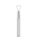 Rowkowanie na powierzchni uchwytu zapewnia pewny i stabilny chwyt, zapobiegając ślizganiu się narzędzia podczas precyzyjnych zabiegów. Estetyczne wykonanie kopytka, z dbałością o detale, nadaje narzędziu profesjonalny wygląd, który doskonale wpisuje się w standardy nowoczesnych gabinetów. Narzędzie wykonano z wysokiej jakości stali nierdzewnej, dzięki czemu jest trwałe, odporne na uszkodzenia i łatwe do utrzymania w czystości. Można je poddawać sterylizacji w autoklawie, co czyni je idealnym wyborem do wielokrotnego użytku w profesjonalnych warunkach.