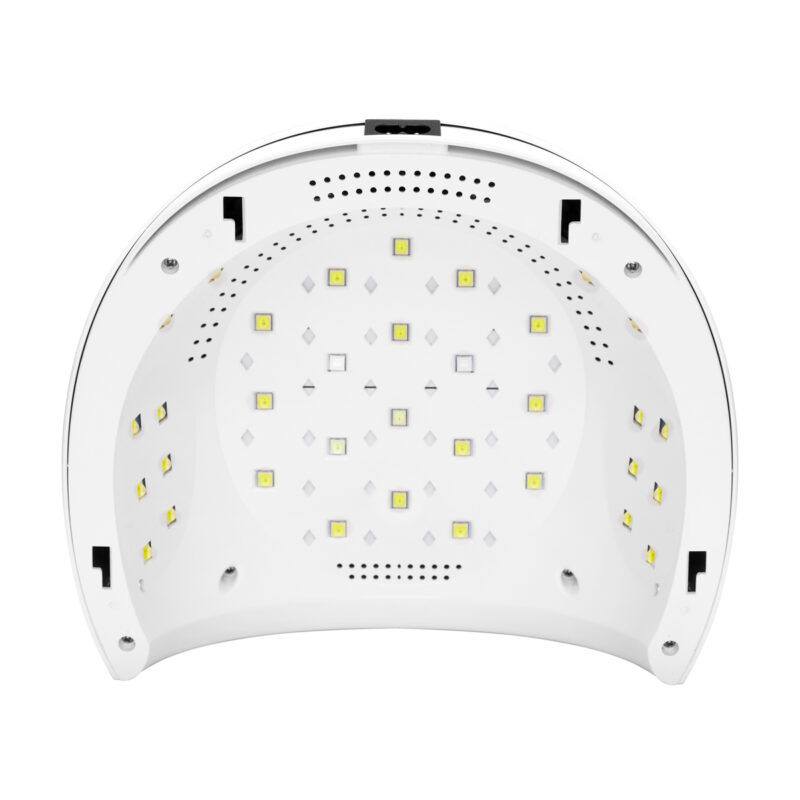 Skrupulatnie dobrane funkcje, matowe wykończenie oraz klasyczne białe odcienie obudowy sprawiają, że lampa jest gustownym, a zarazem niezwykle praktycznym elementem wyposażenia salonu. Odpowiednie wymiary pozwalają na swobodne ułożenie całej dłoni czy stopy pod lampą w trakcie wykonywania zabiegu. Zapewnia to sprawne, równomierne utwardzanie stylizacji oraz zmniejsza ryzyko wystąpienia alergii. Posiada łatwe w demontażu zdejmowane dno, co wyraźnie ułatwia układanie pod nią stopy w przypadku zabiegów pedicure czy podologicznych. Opcja ta sprawdzi się również doskonale w trakcie czyszczenia czy dezynfekcji urządzenia.