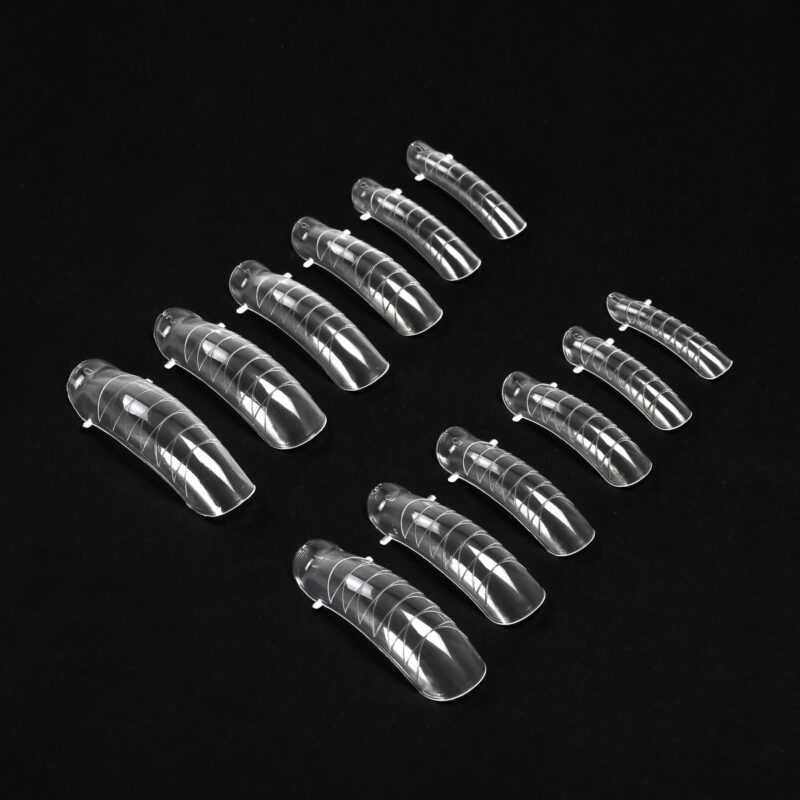 Górne formy w kształcie kwadrata wyróżniają się wyjątkową elastycznością i trwałością, co pozwala na komfortową pracę bez obaw o ich uszkodzenie. Pomocnicze linie ułatwiają nadanie paznokciom wybranej długości, a przezroczysty materiał zapewnia skuteczne utwardzanie w lampie UV/LED. 12 rozmiarów pozwala na idealne dopasowanie formy do naturalnej płytki, co ułatwia uzyskanie perfekcyjnego efektu.