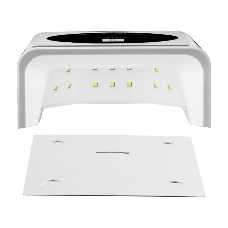 Starannie dobrane funkcje oraz obudowa z trwałego tworzywa sztucznego sprawiają, że lampa jest zarówno eleganckim, jak i niezwykle praktycznym elementem wyposażenia salonu. Wbudowany akumulator zapewnia pełną swobodę pracy bezprzewodowej, co czyni tę lampę idealnym rozwiązaniem nie tylko w salonie, ale także podczas mobilnych usług. Optymalne wymiary pozwalają na wygodne ułożenie całej dłoni lub stopy pod lampą, co gwarantuje szybkie i równomierne utwardzanie stylizacji, a przy tym zmniejsza ryzyko wystąpienia alergii. Magnetyczne, zdejmowane dno ułatwia wykonywanie zabiegów pedicure oraz czyszczenie i dezynfekcję urządzenia, co dodatkowo zwiększa komfort użytkowania.