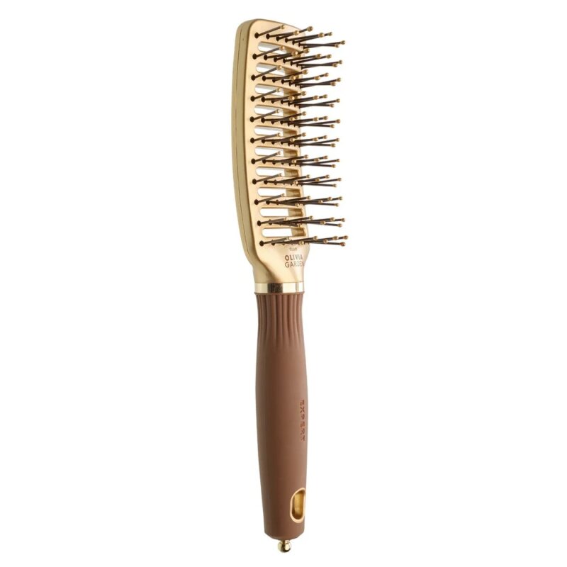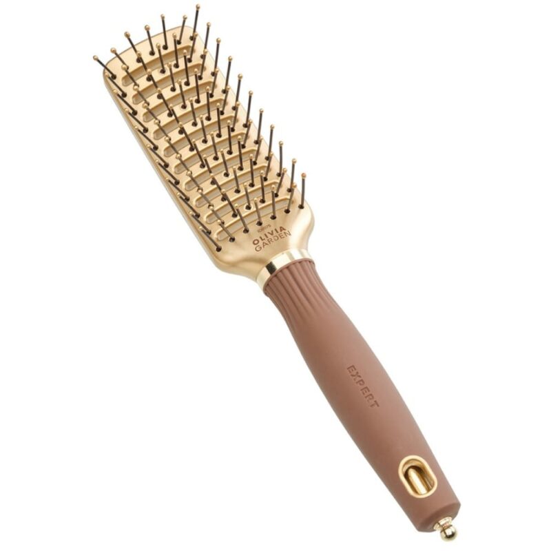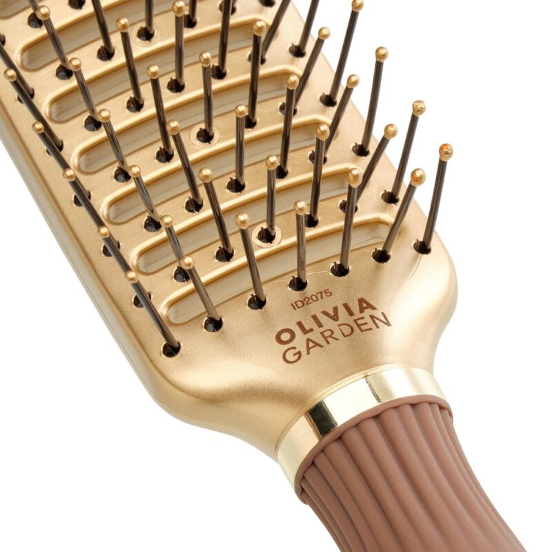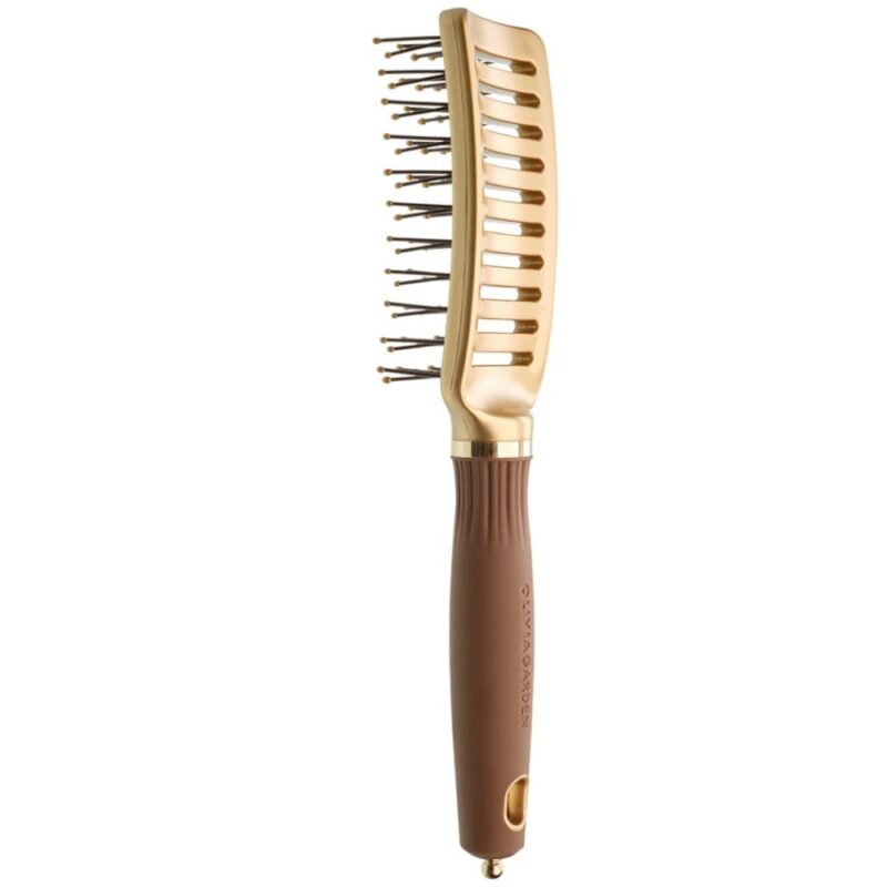 Olivia Garden Expert Style Vent Nylon Bristles Gold&Brown to niezastąpione narzędzie dla każdego fryzjera oraz idealny wybór do domowej stylizacji włosów. Dzięki innowacyjnej wentylowanej konstrukcji, szczotka przyspiesza suszenie włosów, ułatwiając jednocześnie ich prostowanie i wygładzanie. Nylonowe włosie jest wyjątkowo trwałe, a jednocześnie delikatne dla skóry głowy, zapewniając efekt masażu i zapobiegając podrażnieniom.
