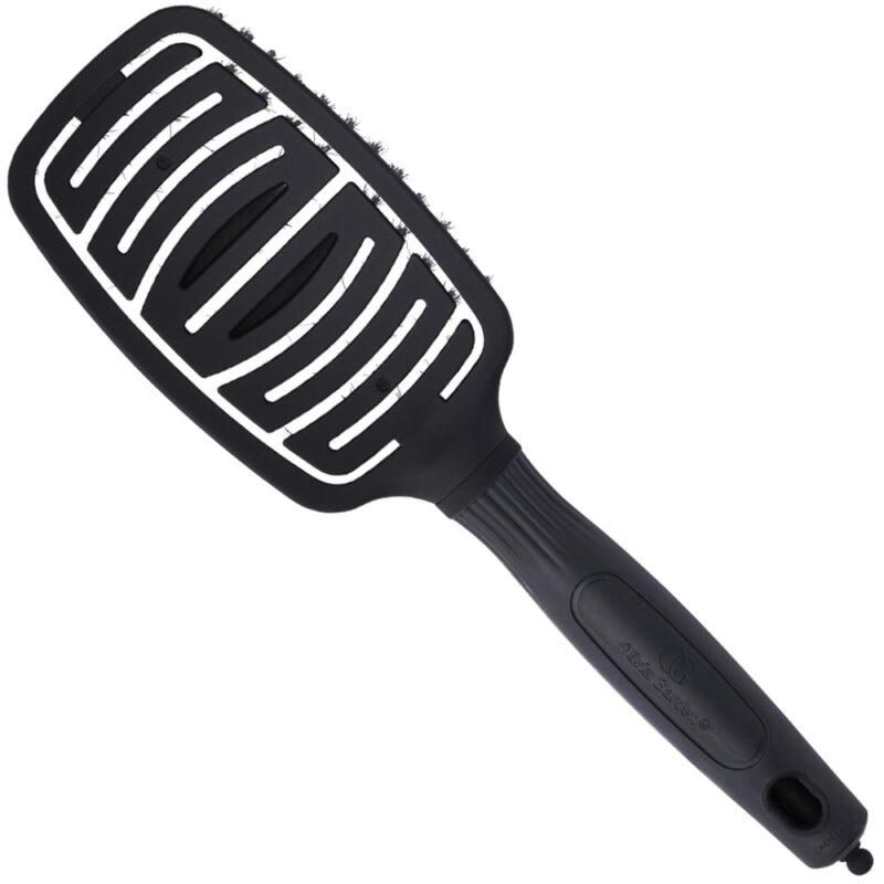 Profesjonalna, wentylowana szczotka Olivia Garden Nano Thermic Ceramic + Ion Black Label Flex to niezastąpione narzędzie podczas codziennego rozczesywania włosów oraz tworzenia bardziej skomplikowanych stylizacji. Doskonale sprawdzi się przy rozczesywaniu zarówno suchych jak i mokrych włosów. Idealna do stylizacji zarówno w domu jak i w salonie fryzjerskim.