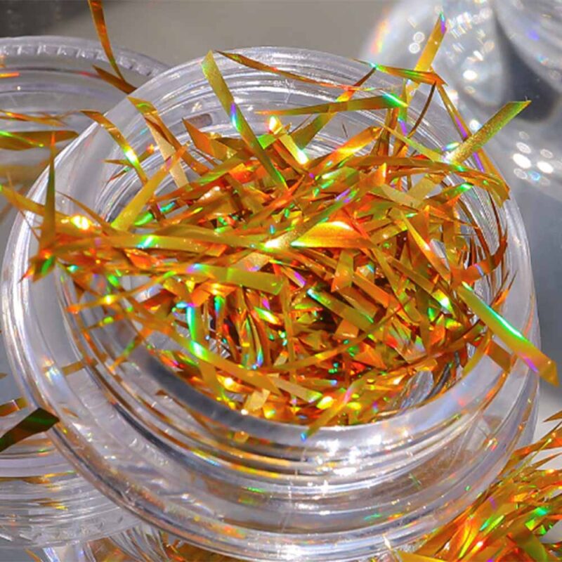 Aurora gloss to drobne kawałki folii imitujące potłuczone szkło.