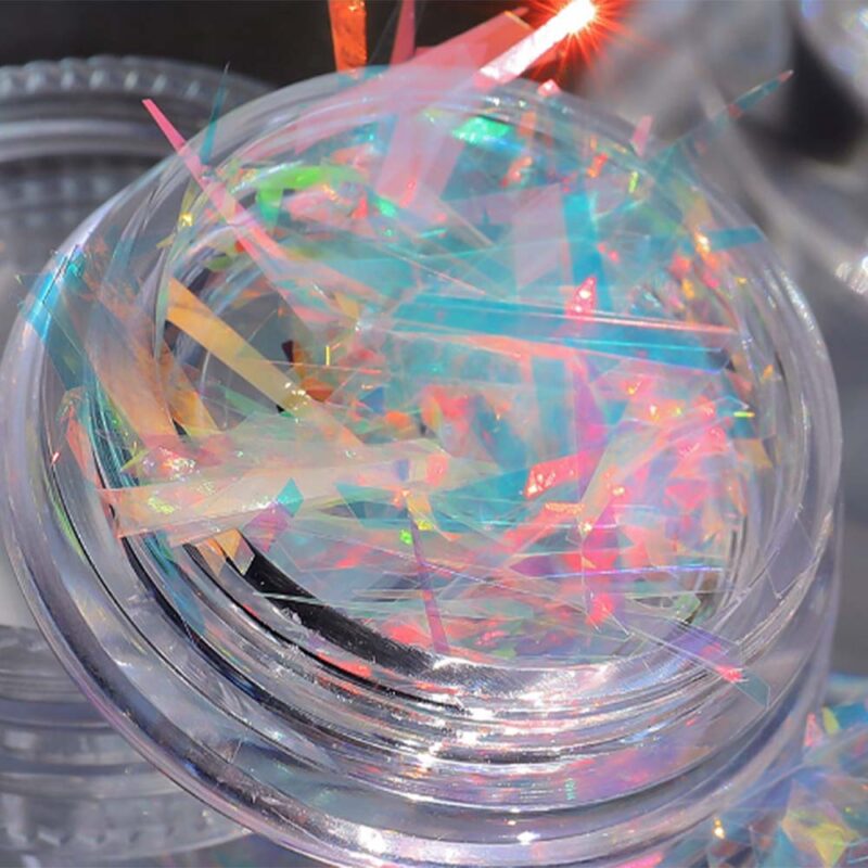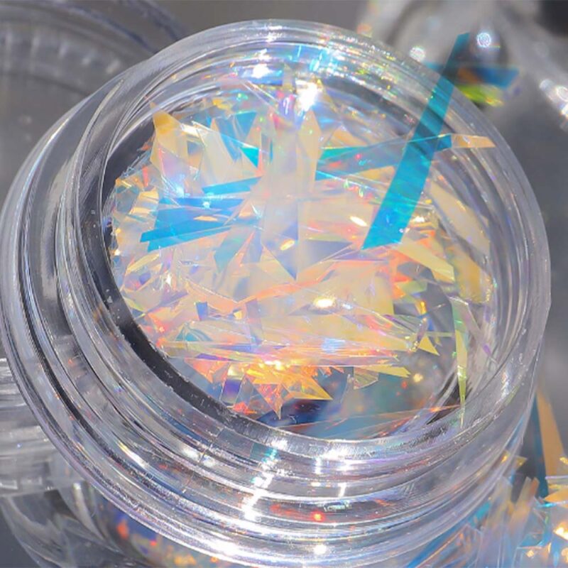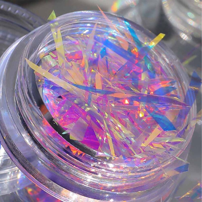Aurora gloss to drobne kawałki folii imitujące potłuczone szkło.
