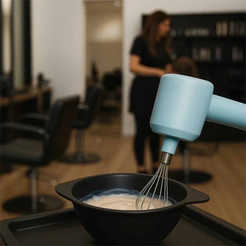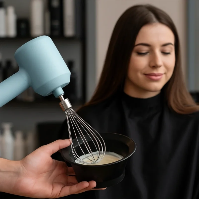 Profesjonalny mikser fryzjerski Ponik’s to niezastąpione narzędzie w każdym salonie. Umożliwia szybkie i równomierne mieszanie farb, rozjaśniaczy, tonerów czy masek pigmentowych, zapewniając idealną konsystencję bez grudek. Dzięki mocy 20 W, bezprzewodowej konstrukcji oraz dwóm wymiennym końcówkom ze stali nierdzewnej, gwarantuje wygodę i efektywność pracy.