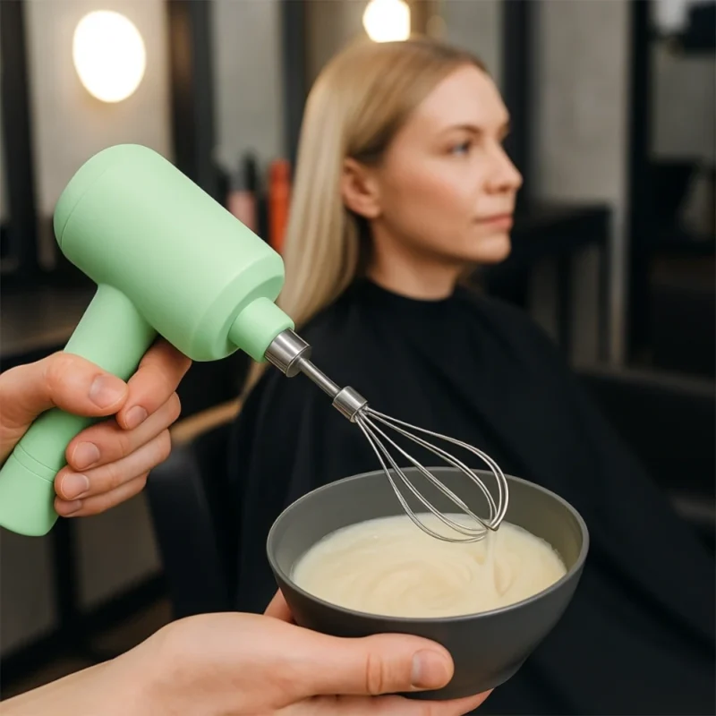 Lekkie i kompaktowe urządzenie (tylko 200 g) zostało zaprojektowane z myślą o codziennym użytkowaniu w salonach fryzjerskich. Mikser pracuje cicho, jest łatwy w obsłudze oraz prosty w czyszczeniu – końcówki można myć pod wodą.