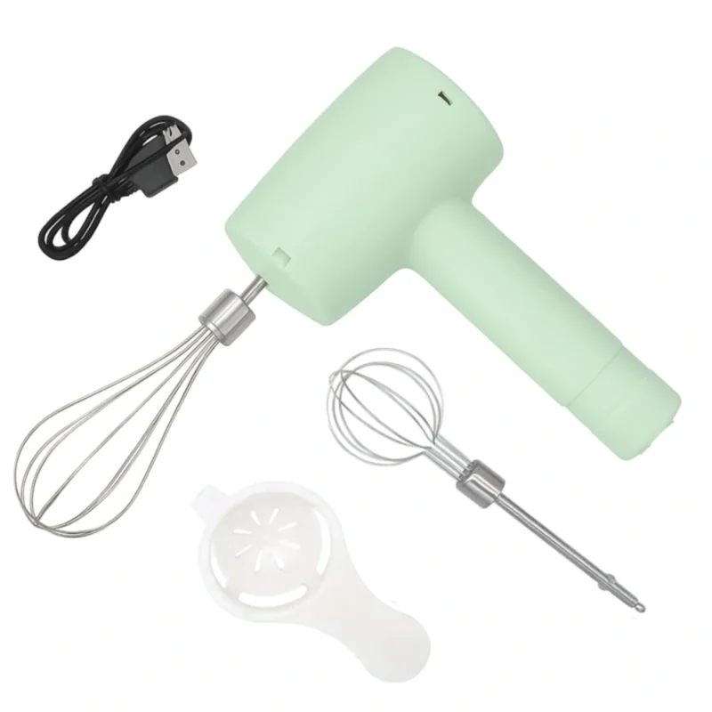📦 Zestaw zawiera: mikser, 2 końcówki, kabel USB, uchwyt ochronny