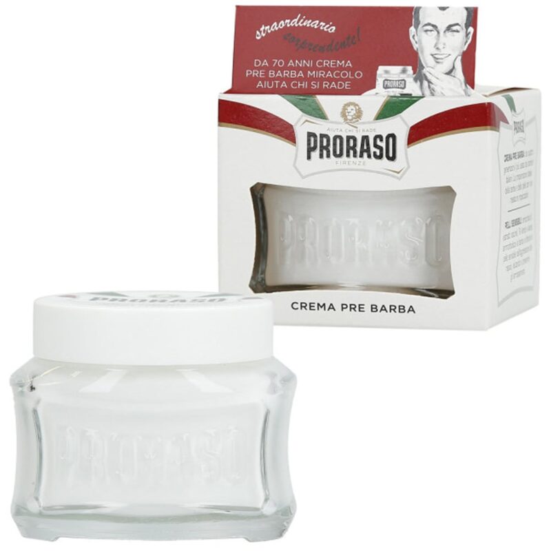 Krem przed goleniem Proraso White służy do codziennej pielęgnacji skóry wrażliwej i skłonnej do podrażnień. Linia Proraso White jest wzbogacona o zieloną herbatę i owies. Produkty nie zawierają parabenów, silikonów, sztucznych barwników ani olei mineralnych. Mają owocowy zapach jabłka i limonki.