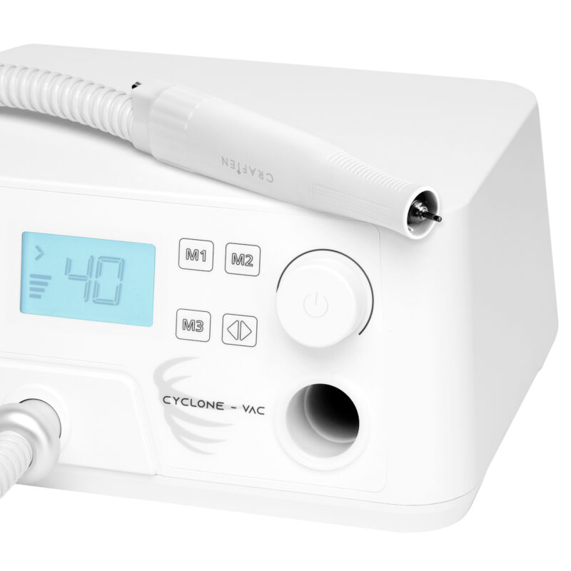 Wysokiej klasy frezarka podologiczna z pochłaniaczem Saeyang Marathon Cyclone-Vac to specjalistyczne urządzenie, które pozwala zachować wysokie standardy higieniczne w gabinecie, efektywnie chroniąc zdrowie osób wykonujących usługi oraz klientów. Profesjonalna frezarka przeznaczona jest do pedicure, zwłaszcza zabiegów leczniczych na sucho przeprowadzanych w podologii, ale sprawdzi się również w trakcie manicure. Wydajna głowica z pochłaniaczem oraz intuicyjna obsługa znacząco usprawniają pracę podologa, ułatwiając wykonywanie szerokiej gamy zabiegów.