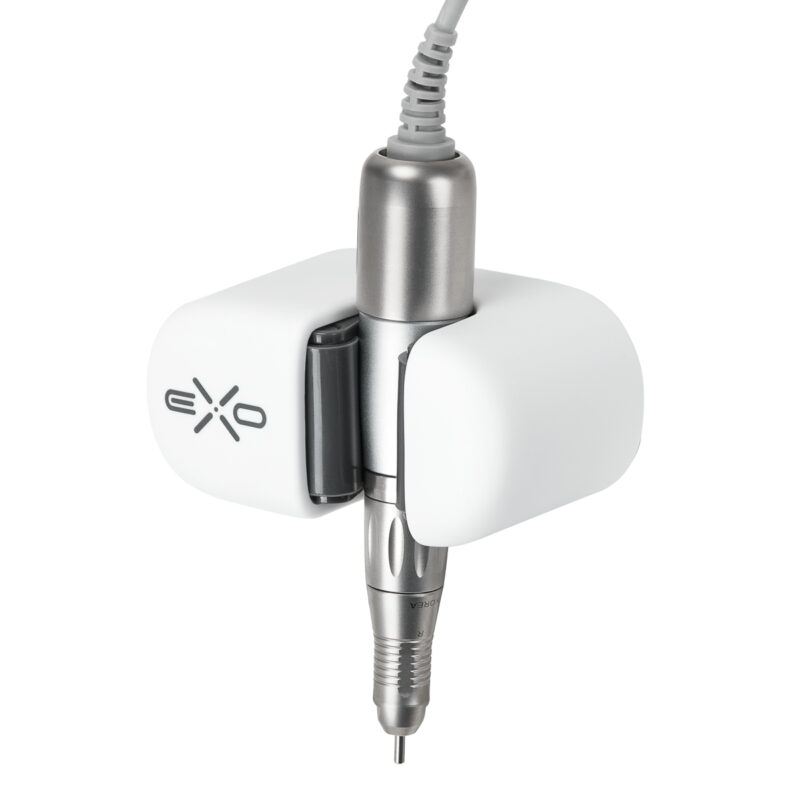 Cicha, ergonomiczna głowica z silnikiem bezszczotkowym o regulowanej prędkości obrotów w granicach 4 000 – 40 000 RPM z wydajnym pochłaniaczem gwarantuje doskonałą jakość usług oraz zachowanie najwyższych standardów higieny, chroniąc płuca zarówno osób wykonujących zabiegi, jak i klientów. Pył z miejsca zabiegu zasysany jest przez otwory w głowicy bezpośrednio do filtra. Przełącznik ON/OFF umieszczony z tyłu rączki pozwala w łatwy sposób w trakcie pracy tymczasowo zatrzymywać obroty oraz ssanie. Usprawnia to swobodne operowanie urządzeniem. Wymiana frezów jest bezproblemowa, co zapewnia zastosowany mechanizm Push-in & Pull-out – wystarczy wcisnąć frez do tulei, bez konieczności zakręcania czy blokowania – a dodatkowo ułatwia to dołączone do zestawu narzędzie. Głowicę w prosty sposób można zdemontować, co usprawnia jej czyszczenie. Zastosowane rozwiązania zapobiegają nadmiernemu zmęczeniu ręki oraz wspomagają komfortową i bezpieczną pracę.