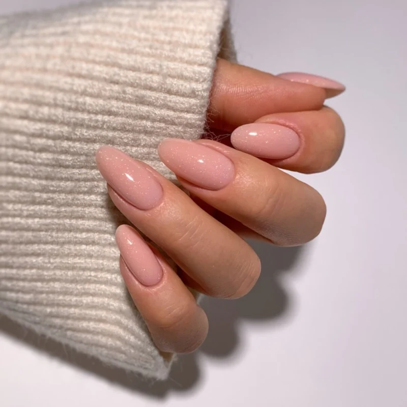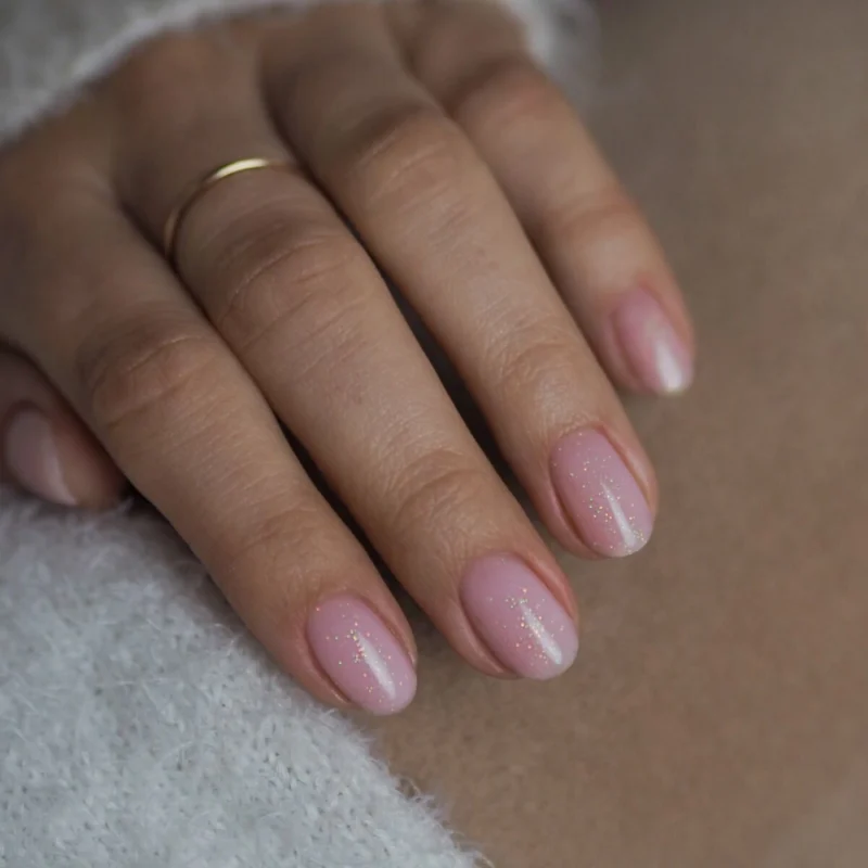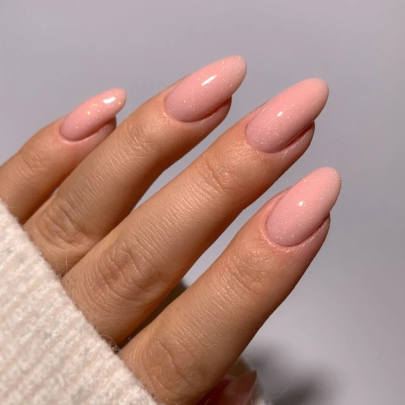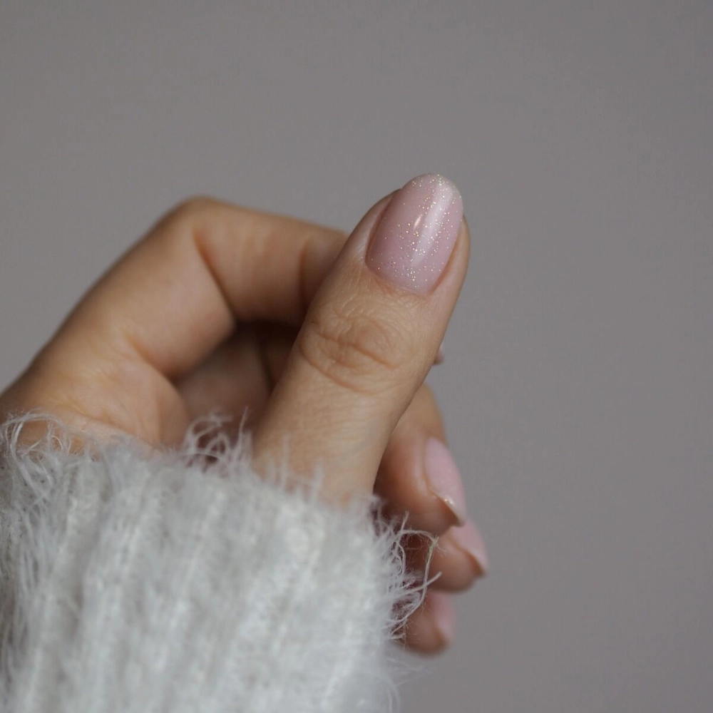 Piękny pudrowy róż, o półtransparentnej formule z kolorowymi drobinkami, które subtelnie odbijają światło i nadają stylizacji delikatny, świeży blask.