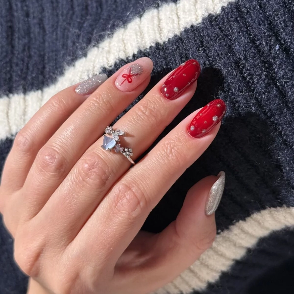 Odcień vintage srebra z dodatkiem drobiny FLASH w kolorze srebra i rdzawej czerwieni, tworzący efekt wielowymiarowego, biżuteryjnego połysku.