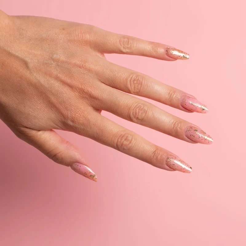 Flakes of Gold to lakier przypominający płatki złota, który doda Twoim paznokciom luksusowego charakteru. Jego niezwykły efekt to połączenie klasycznej elegancji z nowoczesnym błyskiem.