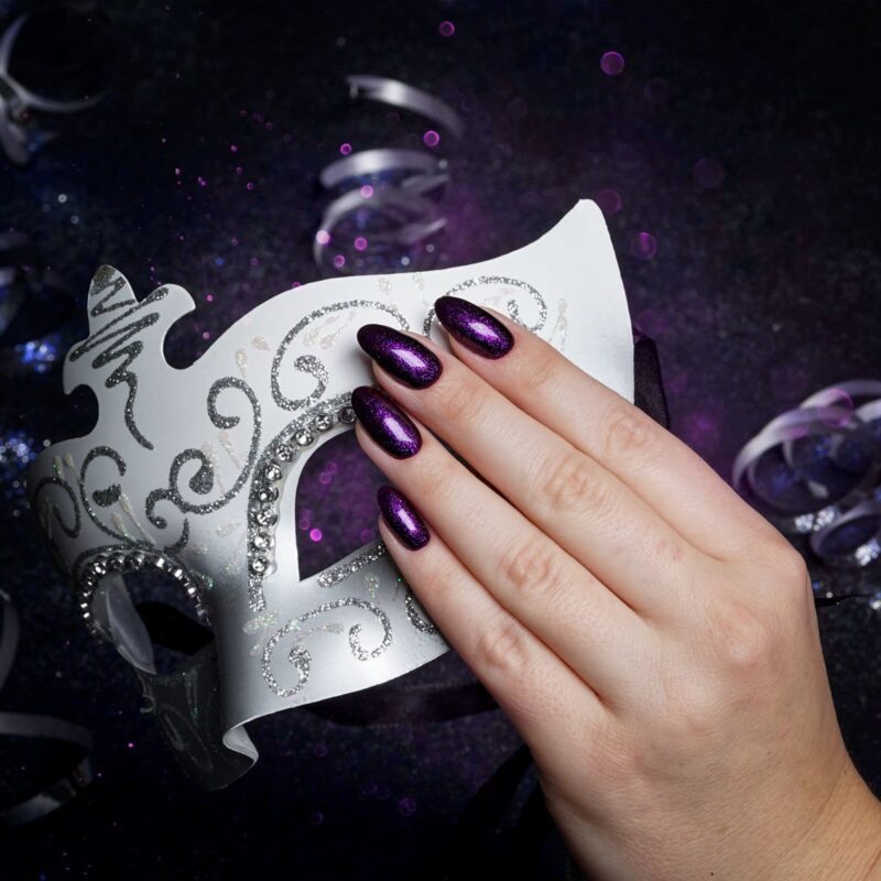 Przepiękny, bardzo ciemny fiolet, który został wzbogacony milionem, subtelnie połyskujących, minidrobinek platyny w odcieniu fioletowym. Doskonały w sezonie jesienno-zimowym.