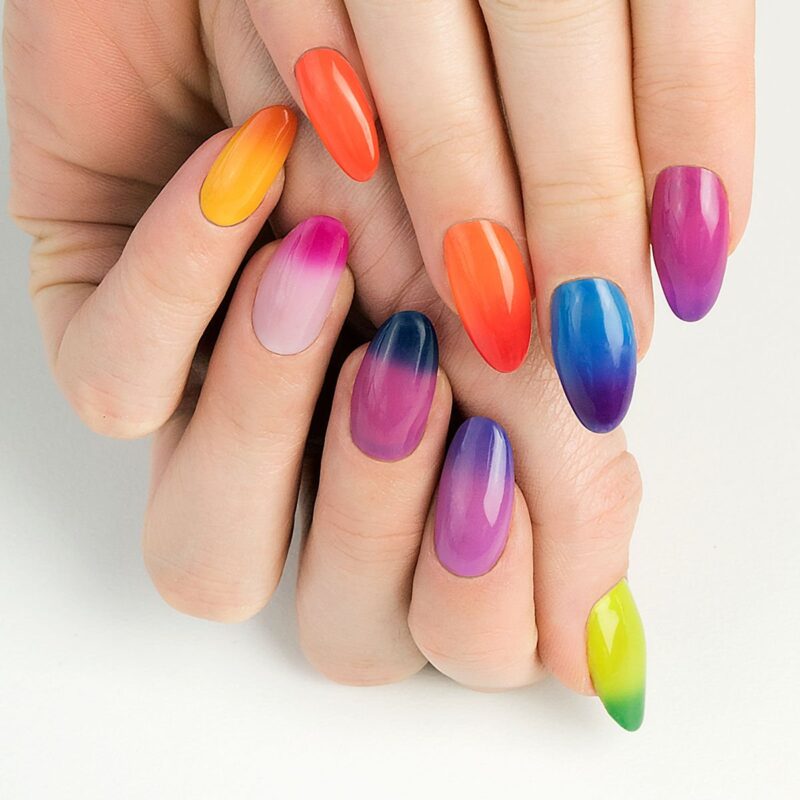 Semilac Thermal to linia 9 termicznych lakierów hybrydowych zmieniających kolor pod wpływem temperatury. W zależności od jej wysokości kolor lakieru hybrydowego będzie przybierać inną barwę! Lakiery jaśnieją gdy jest ciepło, ciemnieją gdy jest zimno.
