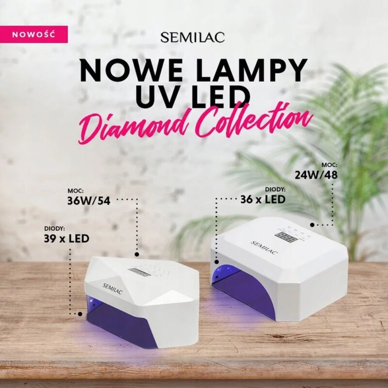 Profesjonalna lampa UV/LED o wyjątkowym kształcie diamentu, z cyfrowym wyświetlaczem ułatwiającym pracę. Utwardza wszystkie lakiery hybrydowe, akrylożele i żele Semilac oraz inne produkty wymagające utwardzania światłem UV/LED.. Lampa posiada cztery tryby czasu utwardzania: 10, 30, 60 i 120 sekund. Dodatkowo wyposażona jest w czujnik ruchu z automatycznym wyłącznikiem (aktywny po jednorazowym wciśnięciu przycisku). Urządzenie posiada wmontowany wentylator, który odznacza się bardzo cichą pracą. Lampa sprawdzi się w każdym salonie kosmetycznym zarówno przy zabiegu manicure jak i pedicure, a jak również będzie stanowiła idealny zakup dla wszystkich osób zaczynających swoją przygodę z manicure hybrydowym.