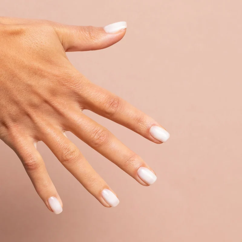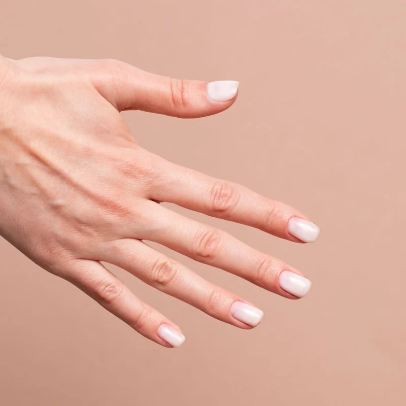 Nakładanie bazy  coverowej Semilac Skin Tone Cover Base jest łatwe i przyjemne – nie będzie stanowić problemu nawet dla osób dopiero zaczynających przygodę ze stylizacją paznokci. Na początek opracowujemy płytkę paznokcia i odtłuszczamy ją Semilac Nail Cleanerem. Nakładamy warstwę Semilac Skin Tone Cover Base i utwardzamy pod lampą (czas utwardzania zależny jest od mocy posiadanej lampy). Stylizację można wykończyć wybranym kolorem lub topem hybrydowym Semilac, pamiętając przy każdej warstwie o zabezpieczeniu wolnego brzegu. Stylizacja gotowa.