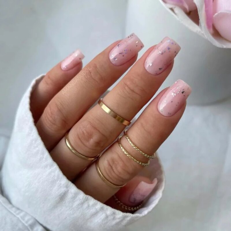 - Błyszczące płatki w szlachetnym połączeniu liliowego różu i szmaragdowego srebra