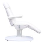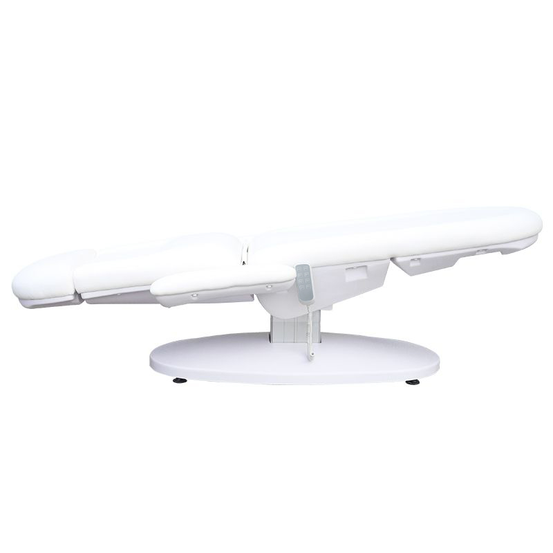 Nowoczesny, estetyczny fotel kosmetyczny sterowany pilotem, o opływowym kształcie z zagłówkiem z otworem. Wykonany z eko-skóry spełniającej rygorystyczne wymogii UE. Fotel posiada możliwość elektrycznego regulowania wysokości, oparcia, kołyski oraz podnóżka.