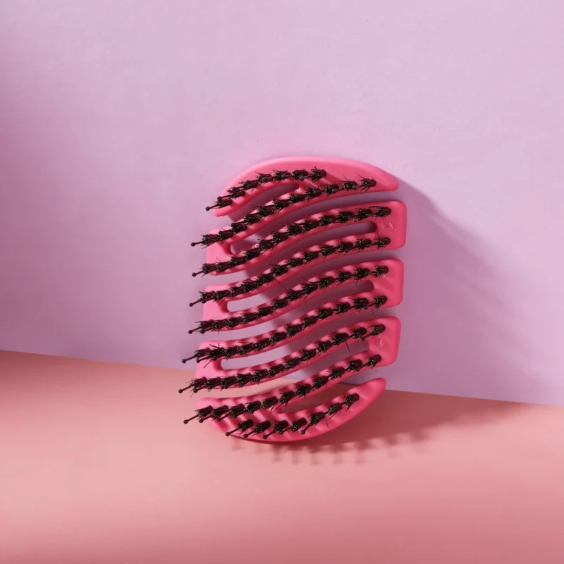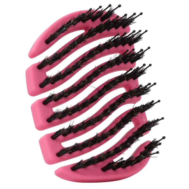 Poznaj Mila Sister Young Pocket Fuchsia 🌸 – kompaktową mini szczotkę do włosów, która łączy naturalne włosie dzika 🐗 z nylonowymi szpilkami zakończonymi masującymi kulkami 💆♀️. Dzięki temu połączeniu szczotka delikatnie rozczesuje włosy, nadaje im blask, miękkość i zdrowy wygląd ✨.