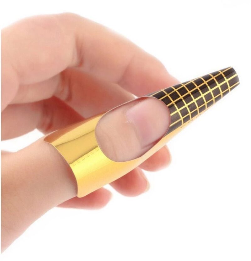 Sposób użycia: Formę należy podłożyć pod wolny brzeg naturalnego paznokcia, zginamy i sklejamy pod palcem, tak aby nie było tam żadnej szczeliny, następnie żel lub akryl nakłada się na szablonie od skórek do wolnego brzegu.