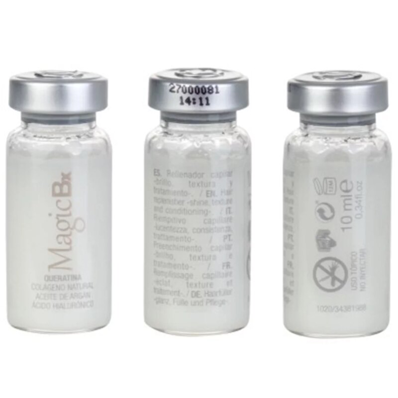- Krótkie włosy: Umieść 20 ml gorącej wody w szklanej miseczce i dodaj strzykawką 2 ml MAGIC BX bezpośrednio po pobraniu z fiolki. Wymieszać pędzelkiem do uzyskania konsystencji żelu.