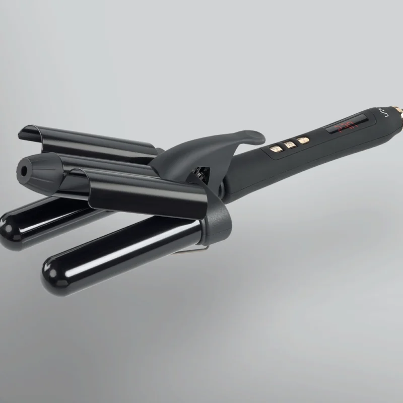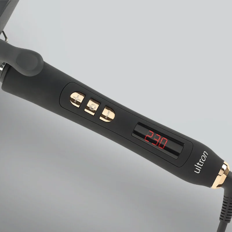 Ultron Shango to 3-baryłkowa falownica Ø 32 mm z powłoką ceramiczno-turmalinową, która w prosty sposób nadaje włosom efekt głębokich, plażowych fal. Dzięki technologii tourmaline ceramic oraz maksymalnej temperaturze 230 °C, urządzenie redukuje puszenie, zwiększa blask i chroni przed uszkodzeniami termicznymi. Szybkie nagrzewanie i cyfrowy wyświetlacz zapewniają równomierne ciepło dla powtarzalnych efektów za każdym użyciem.